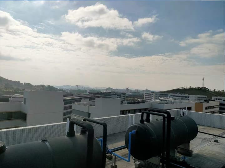 项目简介:广东省潮州市广东卫生健康职业学院,据官网显示,学校占地面积约471亩,总建筑面积约15.2万平方米,学校在编在岗教职工113人,其中具有硕士研究生学历88人,占专任教师的85%。在校学生6600人,共有10栋学生宿舍。按学校要求,每一个宿舍都要满足充足的热水供应,热水出水温度最高达55℃,根据气候变化可自由调节热水温度。